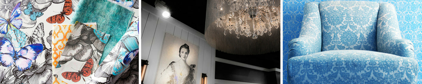 Our stock and custom capabilities can provide you with exactly what you need from our unique wall coverings, machine printed velvets to our hand printed silks and chenilles.
